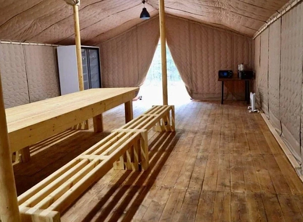По заявлению Стройкомплекса Югры, "Новое сооружение органично сочетается с природным ландшафтом лесного массива. Была проведена отсыпка территории, установлены сборные конструкции. На участке размещены КПП, армейские шатры, место для отдыха с кострищем, а также металлические боксы для размещения оборудования и инвентаря."