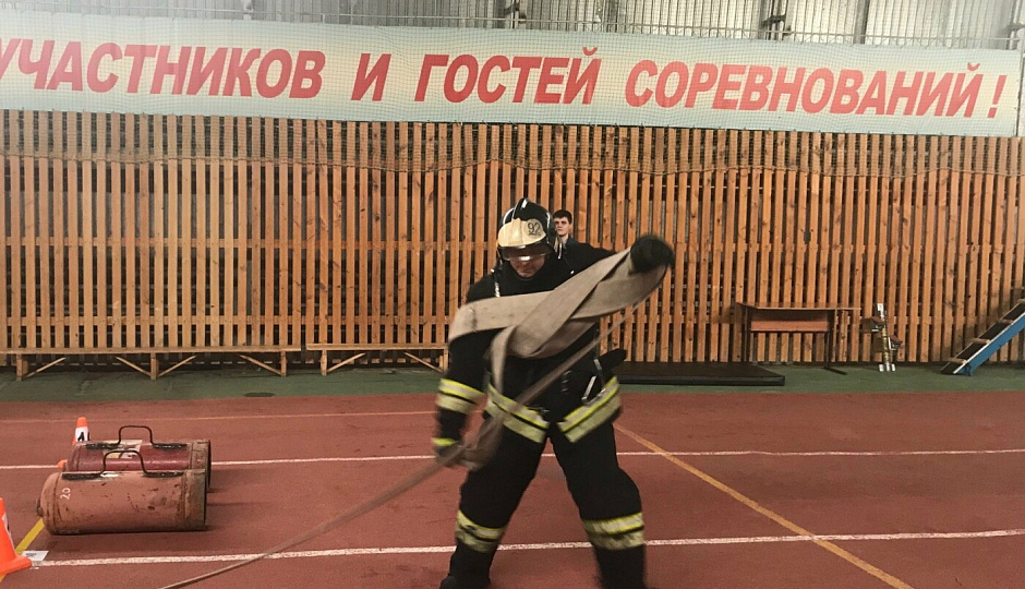 Так, сотрудники, находясь в боевой одежде и с дыхательным аппаратом на спине общей массой около 20 кг, выполняли русские махи гирей весом 24 кг. Также они поднимали 40-килограммовые штанги и кантовали покрышки колеса трактора.