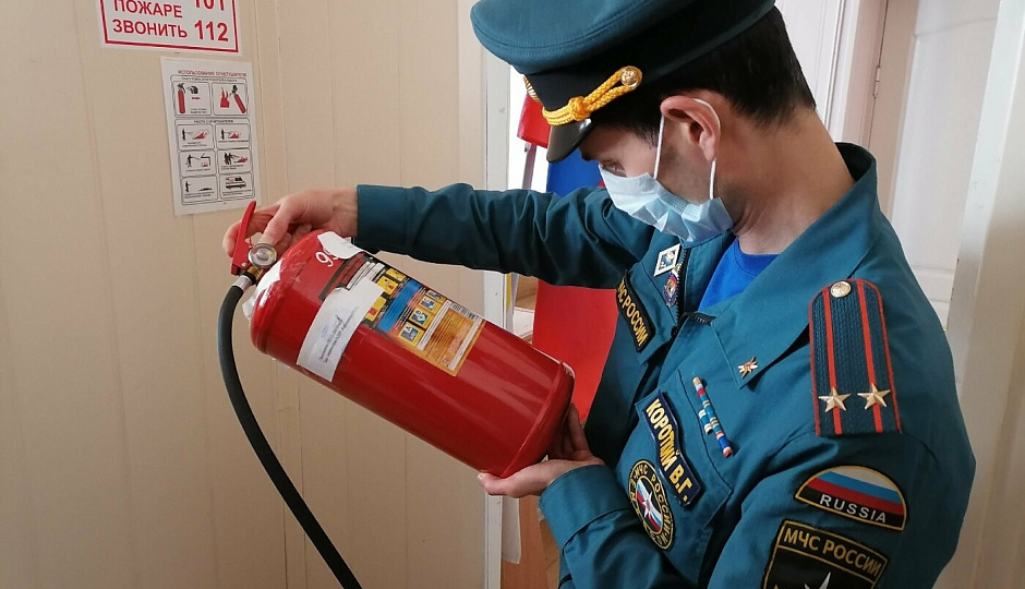 Специалисты проверяют пожарную сигнализацию, огнетушители, систему оповещения, пути эвакуации, знание действий сотрудников образовательных учреждений при возникновении возгорания.