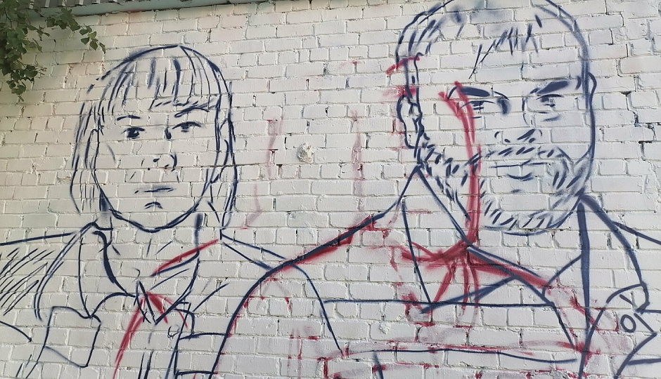 В больничном городке напротив роддома художники приступили к созданию граффити. Рисуют на трансформаторной будке. Стоит отметить, рисунок разделён на две разные сюжетные линии.