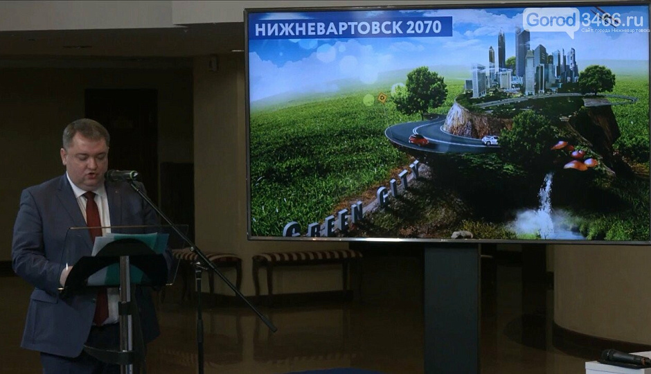 Как рассказал мэр города, главной задачей в ближайшие 50 лет является превратить Нижневартовск в зеленый город и показал один из слайдов, который, как ожидается, должен проиллюстрировать концепцию развития города к 2070 году.