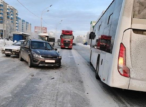В Нижневартовске автобус на повороте спровоцировал цепное ДТП с пострадавшей