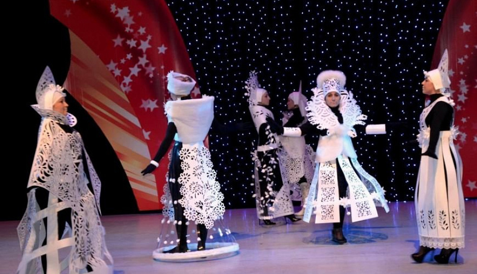 Один из участников последней номинации – коллектив МАДОУ ДС №69 «Светофорчик». Рукодельницы Усова Валентина, Мамоненко Наталья и Собирова Зиля продемонстрировали коллекцию «Зимний сон». Все костюмы выполнены из ватманов, бумаги, меха и синтепона.