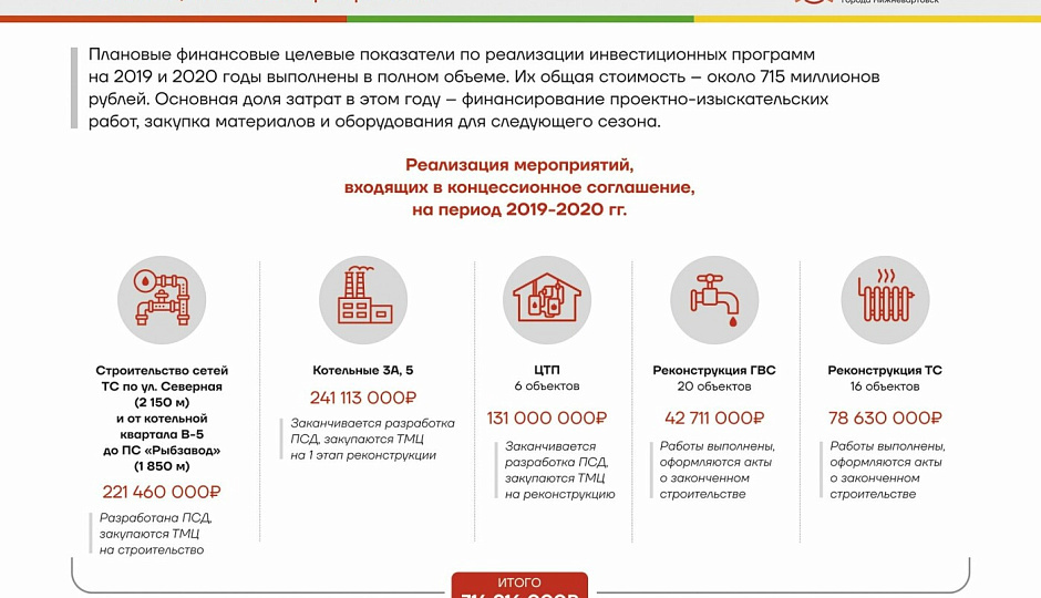 Всего в рамках выполнения инвестиционной программы концессионер вложит в модернизацию тепловой системы Нижневартовска за 10 лет (до 2029 года) 4,5 миллиарда рублей.
