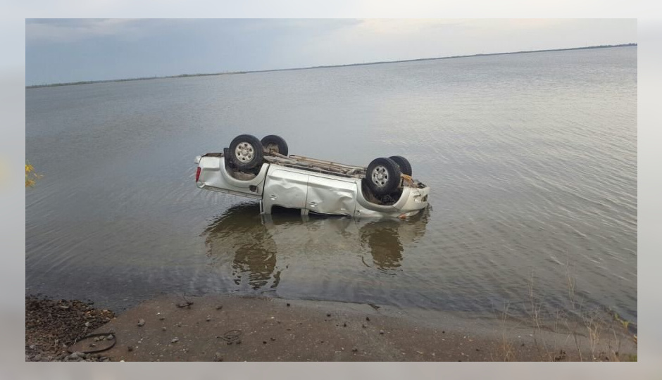 Автомобиль Пикап двигался по дороге вдоль водоема, не справился с управлением и «улетел» прямо в воду.
