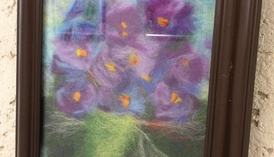 Она называет себя любителем, не профессиональным художником. Но, несмотря на то, что техника достаточно непростая для обывателя, Тамаре Ярославовне удалось воссоздать: березы, цветы, море, природу севера и даже картину Ван Гога «Звездная ночь». А получить какое-то изображение в этой технике непросто. Рисунок создается на матерчатой основе шерстяными нитями путем послойного накладывания цветных шерстяных волокон. Одно неверное движение и все пойдет насмарку. Всего на выставке представлено около 50 картин. И каждая связана с какой-то историей.