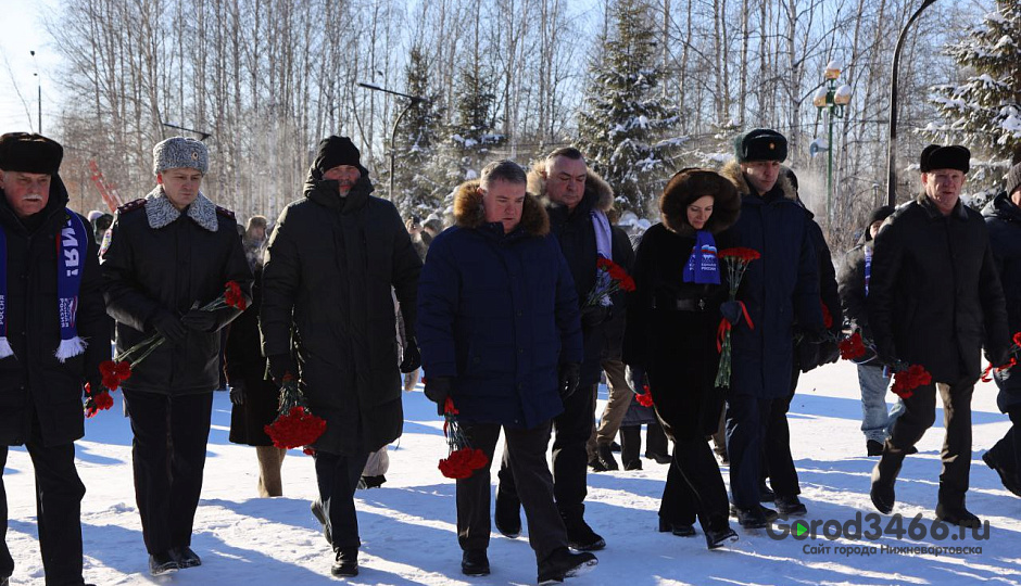В Нижневартовске в честь праздника возложили цветы к мемориалу в парке Победы
