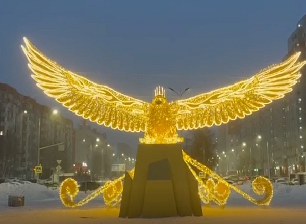 Нижневартовск активно преображается к Новому году, и одним из главных украшений города стала впечатляющая световая инсталляция. На оживлённом автомобильном кольце улиц Ленина — Чапаева теперь располагается сказочная Жар-птица. Грандиозная фигура высотой 8 метров с размахом крыльев более 7 метров уже стала новой праздничной достопримечательностью. Её сияние создаёт волшебную атмосферу как для водителей, проезжающих по кольцу, так и для пешеходов. Ранее Gorod3466.ru сообщал, что в Нижневартовске перекроют проспект Победы для новогодних мероприятий.