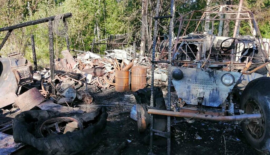 Пожар произошел ночью 13 июля в пгт. Луговой Кондинского района. Горела хозяйственная постройка и вездеход.